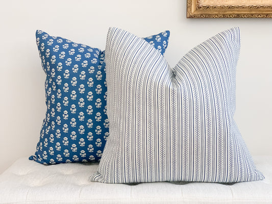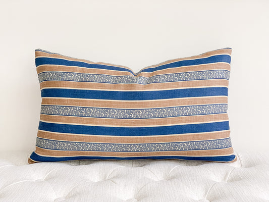 Auguste Stripe Pillow Cover - Marine & Cognac