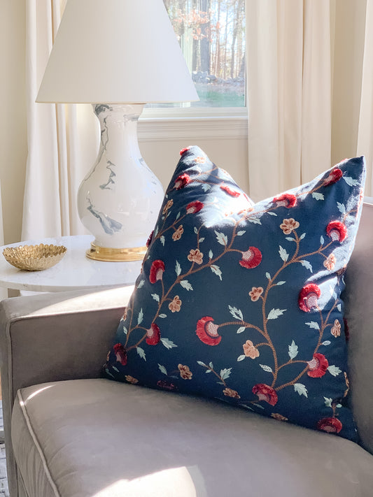 Iyla Embroidery Pillow Cover - Midnight & Rouge